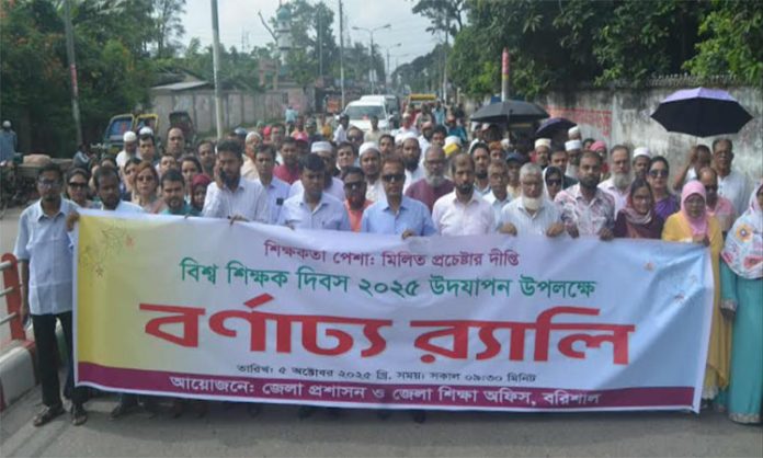 ‘শিক্ষক পেশা মিলিত প্রচেষ্টার দীপ্তি’ প্রতিপাদ্যে বরিশালে পালিত হয়েছে বিশ্ব শিক্ষক দিবস।