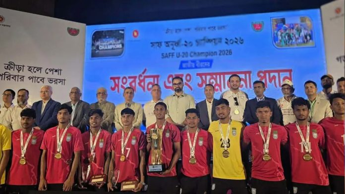 অনুষ্ঠানে প্রধান অতিথি হিসেবে উপস্থিত থেকে যুব ও ক্রীড়া প্রতিমন্ত্রী মো. আমিনুল হক সাফজয়ী দলের ফুটবলার ও কোচিং স্টাফদের প্রত্যেককে এক লাখ টাকার চেক প্রদান করেন। এছাড়া ২৩ জন ফুটবলারকে দেয়া হয় বিশেষ ক্রীড়া ভাতা কার্ড।